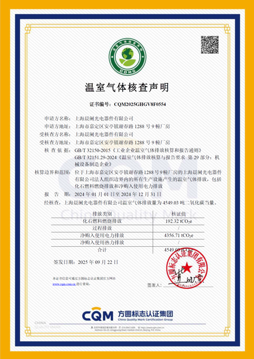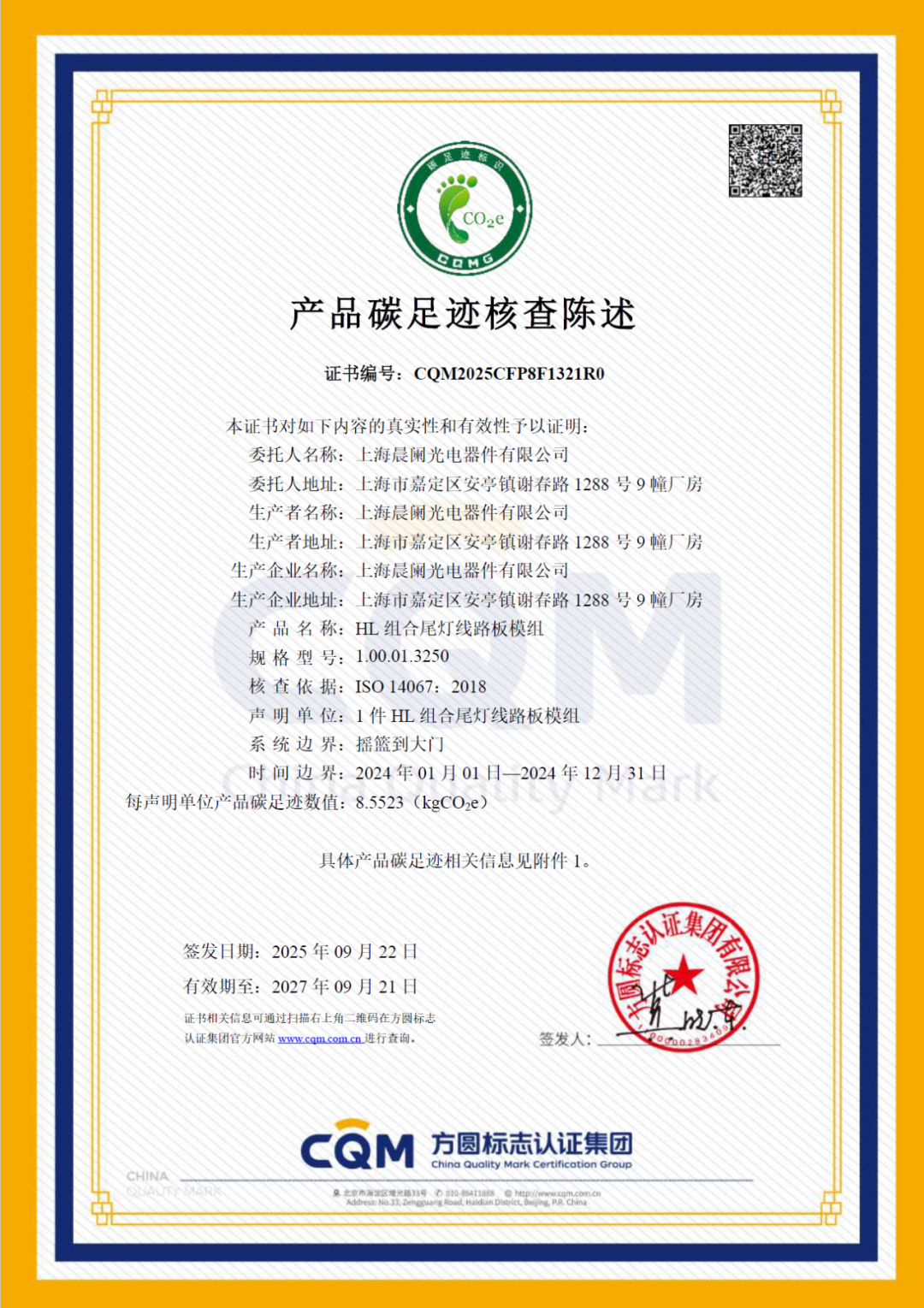 为提高绿色惩处法式化、国外化水平,晨阑光电积极鞭策零碳数智化转型,在温室气体管控、碳足迹跟踪等领域开展前瞻性扩充。凭借塌实的惩处体系与握续技巧进入,晨阑光电先后通过ISO50001动力惩处、ISO14067家具碳足迹、ISO14064温室气体排放三大国外认证,象征“低碳领航”计策迈入练习阶段,绿色运营才智接轨国外法式。